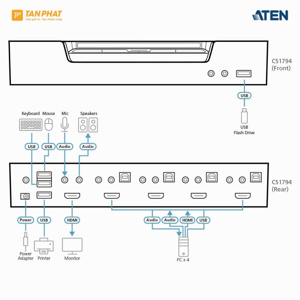 👉 Nếu bạn đang tìm kiếm Bộ chuyển mạch KVMP ATEN CS1794 USB HDMI/Âm thanh chính hãng với giá tốt, hãy liên hệ ngay Tân Phát để được tư vấn chi tiết và nhận ưu đãi hấp dẫn.