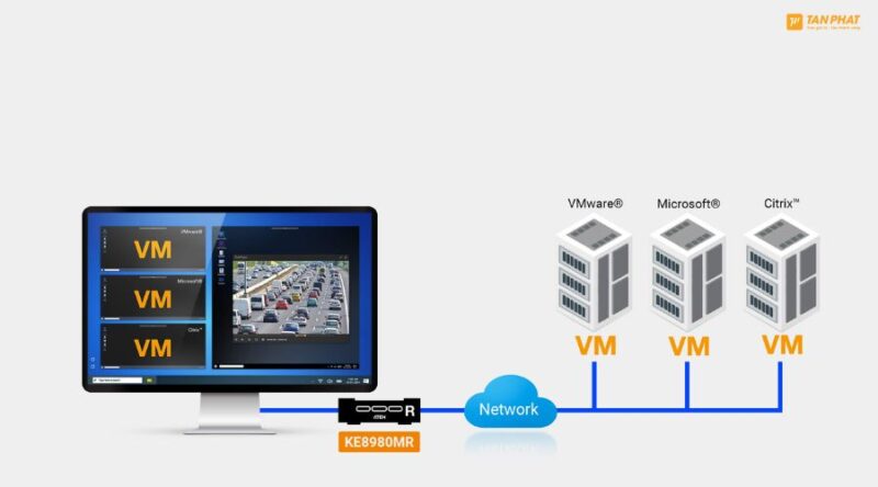 - Kết nối trực tiếp máy ảo (VM) không cần phần cứng bổ sung: Thiết bị hỗ trợ truy cập trực tiếp các máy ảo thông qua RDP và VNC, tương thích với các nền tảng phổ biến như VMware®, Microsoft® và Citrix™.